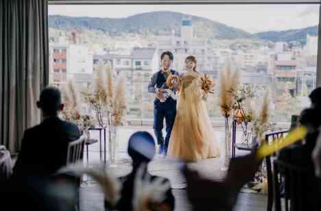 おふたり「式場探しは「京都でリングドッグができるところ」に絞って探していました。今までふたりの人生を支えてくださった方々に見守って頂き承認して頂く一日「結婚式」がこんなにも温かく幸せなことなんだと言葉に出来ない気持ちで溢れました。人を愛すること、愛されることの大切さに気づき、代々受け継がれてきた「愛」の継承に感謝の気持ちでいっぱいになりました。」