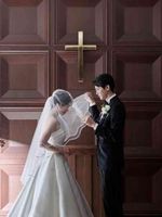 ウエディングベールは古代ギリシャ・ローマ時代から始まった風習であり、「ベールで顔を隠すことで花嫁を災いから守る」という魔除けの意味があると言われ、ベールを上げる瞬間「これからは僕が守ります」という新郎様の決意表明を意味します。