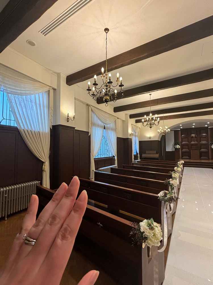 プロジェクターと会場が少し小さい印象。家族婚のわたしたちはちょうど良い大きさでした。教会はすこし地味な印象。