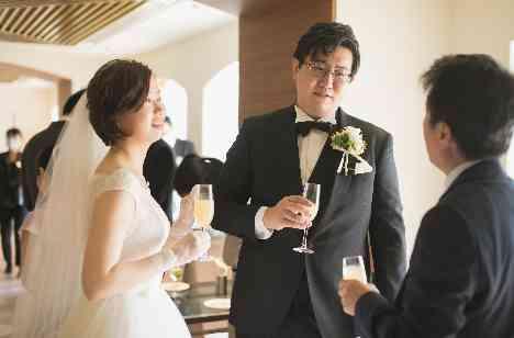 穏やかな雰囲気で新婦様に寄り添っていらっしゃる新郎様と笑顔が素敵な新婦様。大阪在住で中国ご出身のおふたりは、日本語学校のクラスメートとして出会われ、お友達からスタートし交際に発展したそうです。当初は中国で結婚式を挙げられる予定でしたが、新型コロナウイルスの影響で帰国ができなくなり諦めていたところ、「~オンライン挙式+アフターパーティ~のモニター体験」を見つけられ応募されました。