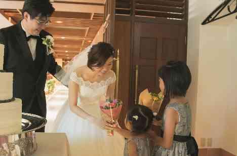 中国では丸1日かけて挙式と披露宴をおこない、衣裳は何着も着用されるそうです。中国と日本の結婚式の文化の違いに「楽しみ」とワクワクされていたのが印象的でした。ケーキ入刀をおこなったり、参列のお子様からサプライズで花束のプレゼントがあったりと、大好きな仲間に囲まれながら、笑顔いっぱいの時間となりました。