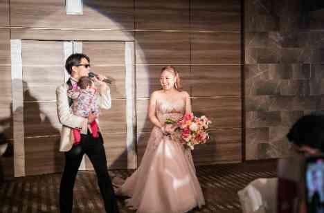 披露宴の目玉は「人前で話すのが苦手なんです」とおっしゃっていた新郎様の歌のパフォーマンス!プランナーにも「注目してくださいね」と事前に意気込みを語り、ご自身にプレッシャーを与えながら、お色直しで歌いながらの入場で、会場内は笑顔に包まれました。 写真撮影の機会をたくさん設けられ、新郎新婦・ご家族・ゲスト共に待ち望んだこの日を思う存分楽しまれました。