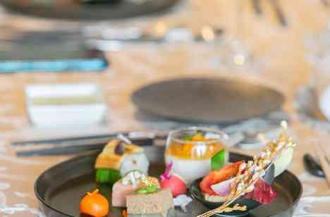 挙式後はガラッと雰囲気を変えて、タキシードと落ち着いたお色味のカラードレスにお召し替えをされてご登場。ご会食では、一生に幾度とない時間だからこそ、より特別なお料理を一皿ずつセレクト。地産地消の食材をふんだんに使用したメニューにご家族からも笑顔がこぼれます。お衣裳姿で少し照れながらも、柔らかい笑顔を見せながら、和気藹々とお過ごしになられました。