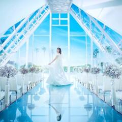 【海の絶景ロケーション】海と青空に囲まれたチャペルで入場体験!開放感を感じるガラス張りの感動のチャペル「ブルービジュー」。小高い丘に佇む天井高13mの木の香りに包まれた森のチャペル「アーリオス」もご紹介