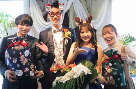 私たちは12月の結婚式であった為に、お越し頂くゲストの方々へおもてなしの気持ちも込めて、クリスマスをテーマにしました。 披露宴中には二人でトナカイのカチューシャを被って、皆で記念写真をパシャリ。 冬らしくて、とても良い思い出になりました。 結婚式までの準備はとても大変でしたが、それ以上にゲストの笑顔を見ることができて、幸せな気分になる事ができました。