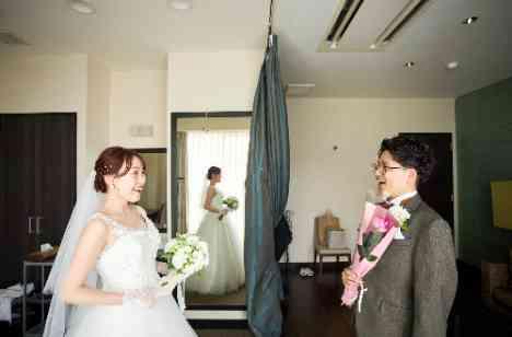当日までウエディングドレスを内緒にしていたご新婦様。いよいよご新郎様にお披露目です♡ ブライズルームにてカーテン越しにスタンバイ☆そしてカーテンがオープンされ、お二人がついにご対面♡ ご新婦様の素敵なウエディングドレス姿にご新郎様も笑みが溢れます♪ お二人の初々しいお姿にほっこりする瞬間でした♡