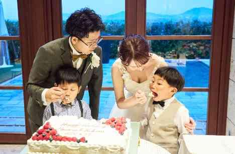 お二人のケーキ入刀&ファーストバイトが終わると、お二人よりかわいらしい二人のお呼び出しが♡ お二人の甥っ子君たちにサプライズバイトの演出が♪ おいしそうなケーキを前に二人とも思いっきり「あ~ん」!! 最後はお二人よりプレゼントもいただきました☆ かわいらしい甥っ子君たちの姿に会場全体がほっこりする素敵な瞬間でした♡