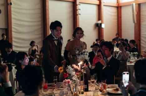 お色直し入場後はキャンドルサービスをしながらゲストのテーブルを順番に周られたおふたり。ロウソクの火には感謝の気持ちや幸せをおすそ分けするという意味が込められており、キャンドルサービスはそんな火の灯りを通しておもてなしの気持ちを伝えることができる演出です♡友人の皆様からの「おめでとう!」の声に迎えられ、おふたりもリラックスした様子でご挨拶をされていました♪