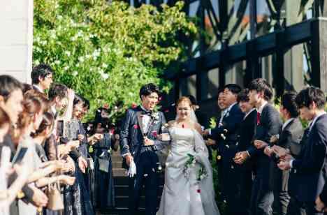 フラワーシャワーの起源は、古代ローマ時代といわれており、豊穣(ほうじょう)を象徴する小麦を放ち、ふたりの豊かな未来を願ってお祝いしていたようです。後に小麦からライス、そしてフラワーに変わっていきました。フラワーシャワーには、花の香りで周りを清め、幸せを妬む悪魔や災難からふたりを守り、幸せを願うという意味が込められているんですよ。写真映えも良く、笑顔のお二人がとっても魅力的な1枚が撮れましたね♡