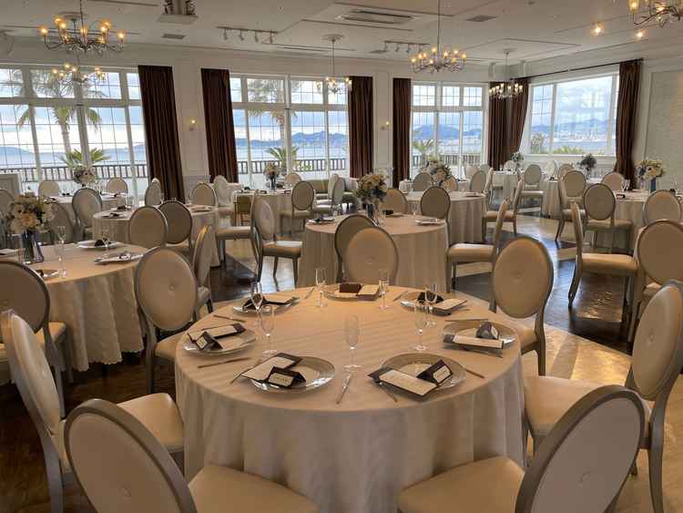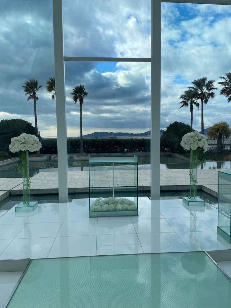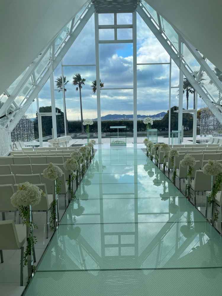 会場の雰囲気としてはとてもよく、チャペルも白と青を基調としているためリゾート感を感じる。とても綺麗でした