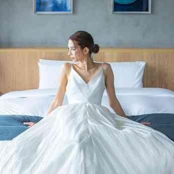 - ふたりが泊まるのは14室限定のラグジュアリールーム。明日のドレス姿を想像して自然と笑みがこぼれる。