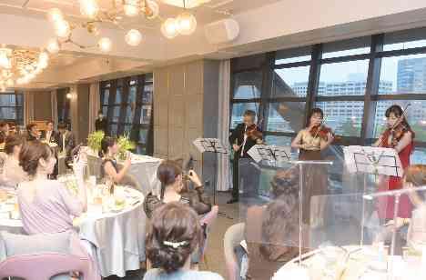 お色直しのご入場は新婦おじ様のバイオリン演奏に合わせて♪その後、新婦様も加わり、おじ様ご夫婦と3名で演奏を。新婦様はこの日のジョイントに向けて練習にも励まれました。会場全体が綺麗な音色に包み込まれ、とても穏やかな時間が流れました。お見送りのプチギフトは色とりどりの「ういろバー」。名古屋らしい銘菓をお渡ししながら、感謝のおもてなしをしました。