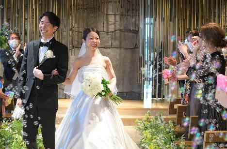結婚証明書は愛犬の肉球スタンプが押されたオリジナルのデザイン。証明書の周りはドライフラワーを飾り、式中におふたりで最後の装飾を完成。入場時は新郎様もお父様からのジャケットセレモニー、お母様からグローブのお預かりをして、見守られながら一歩一歩進んで行きました。指輪交換では可愛いリングボーイ&ガールが登場。最後はキラキラ輝くバブルシャワーで退場しました。