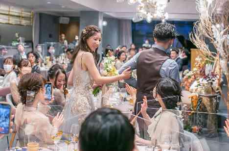 サプライズメニューで【鯛茶漬け】をおもてなし。メニュー表には入れず、当日、司会者からのアナウンスにより1品のご紹介。おふたりのために来てくださったゲストに感謝の気持ちを込めて...と少しでも多くの感謝を伝えたい、そしておもてなしをしたいというゲスト想いのおふたりからの心温まるサプライズメニューとなりました。