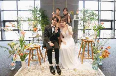 新婦様はビーズ刺繍の大輪の花が美しいハイネックのレイヤードスタイルでご入場。お二人が一番大切にされていたゲストと過ごす時間をメインのパーティ。自由に行き来し、再会の喜びや思い出に会話が弾みます。ご友人のスピーチもご兄弟・ご姉妹での中座も、笑顔で。終始、笑顔が溢れる時間となりました。再入場は大胆なVラインと胸元のビジューが素敵なドレス。バックデザインにもこだわり、どの角度からもおしゃれな一着です。