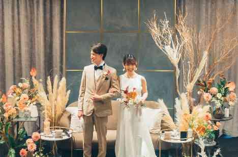 テラコッタやくすみピンクカラーをアクセントに、真っ白なパンパスグラスと白樺の枝が印象的なメインソファ。大切な方々が一度に集う空間は、お二人にとって夢のようで全てが幸せの瞬間です。ゲストの皆様もお二人の幸せな姿に歓喜し、笑顔満開に。「おめでとう」「ありがとう」と会場にはたくさんの祝福と感謝があふれます。互いを想い、大事に紡いできたご縁。最高の笑顔が思い出の一枚一枚を彩りました。