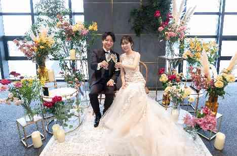 どのシーンにもお花を添えて自然の美しさも楽しむ結婚式。ウェディングドレスのブーケは薔薇の中から流れるような一輪の胡蝶蘭が印象的なデザイン、カラードレスに合わせたグラデーションが綺麗なひと束は黄色をアクセントに。アルストロメリア・シンピジウムなど沢山の花々が咲くメインソファは、こころ華やぐ素敵な空間です。お色直し入場のフラワーラウンドでは、優しい安らぎのおもてなしで感謝の気持ちをお伝えされました。