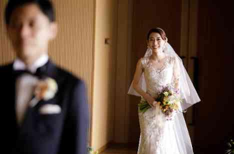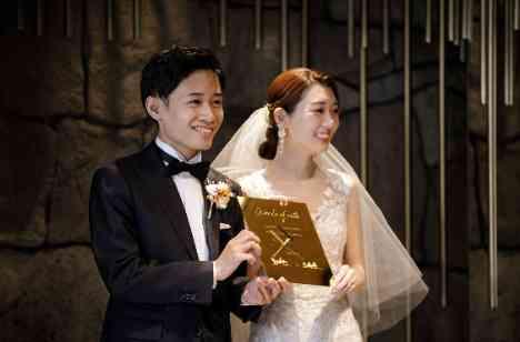 バージンロードをあゆむお二人の姿は喜びに満ちあふれ、その色彩が見えるほどにチャペルをゆっくりと染めていきます。どのシーンも最高の笑顔でお披露目を、ゲストの皆様からも自然と拍手喝采が湧き立つ朗らかであたたかいセレモニー。一緒に時を刻む証として選ばれたのはゴールドミラー時計。お二人の未来に一閃の輝きを放ちます。