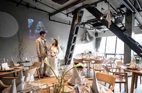 少人数ウェディングの舞台は、テレビ塔らしい斜めの鉄柱や伝統工芸を散りばめたレストラン「glycine」。どこを切り取ってもおしゃれで、フォトジェニック空間としても人気です。お二人も思い出の一枚を。パーティの楽しい時の中で、薫りたつオープンキッチンとシェフのライブパーフォマンスを身近に、美食のおもてなしも1組貸切でゆっくりご堪能いただけます。