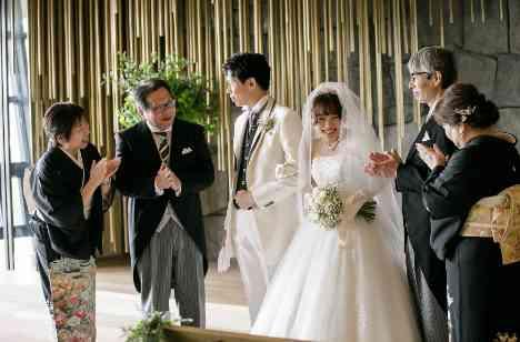 お二人だけの、そして親御様とのファーストミートから心ひとつに誓いの時間へ。大切に紡いできた絆を象徴するウェディングツリーの結婚証明書は、グリーンが鮮やかな彩りでこれから先もつづく皆様とのご縁にさらに幸せが広がるようです。バージンロードには祝福の声と拍手が優しいリズムを奏でて、お二人の未来のはじまりを見届けられました。