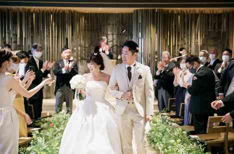 木の温かみを感じられるようなチャペルは他にはない珍しいチャペルとお二人のお気に入りのひとつに。挙式はクラシカルな雰囲気の中、教会式を行いました。フラワーシャワーではカップで個別にお渡し。コロナ対策をしながらゲストの祝福がチャペルいっぱいに広がりました。挙式前はお二人が祭壇で親族をお出迎え。これから一緒に幸せに、そしてお願いしますの想いを感じる特別なお顔合せの時間になりました。