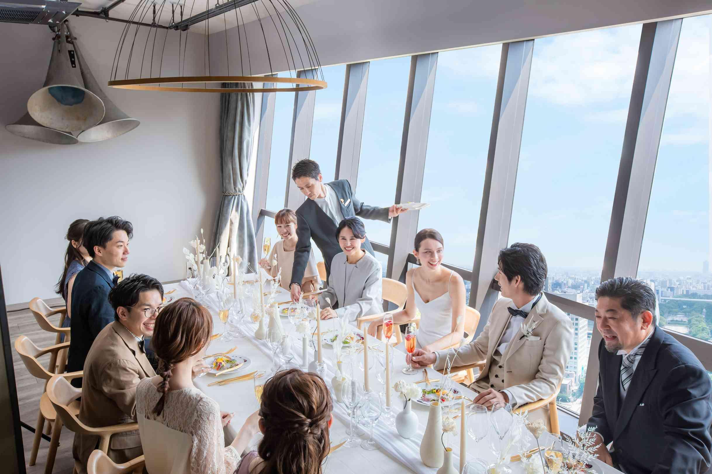 地上100mの展望台から眺める圧巻とロマンチックな夜景が独り占めできる場所。宝石のように光り輝く名古屋ん街並みを眺めながら時間を気にせず寛ぎのパーティを。