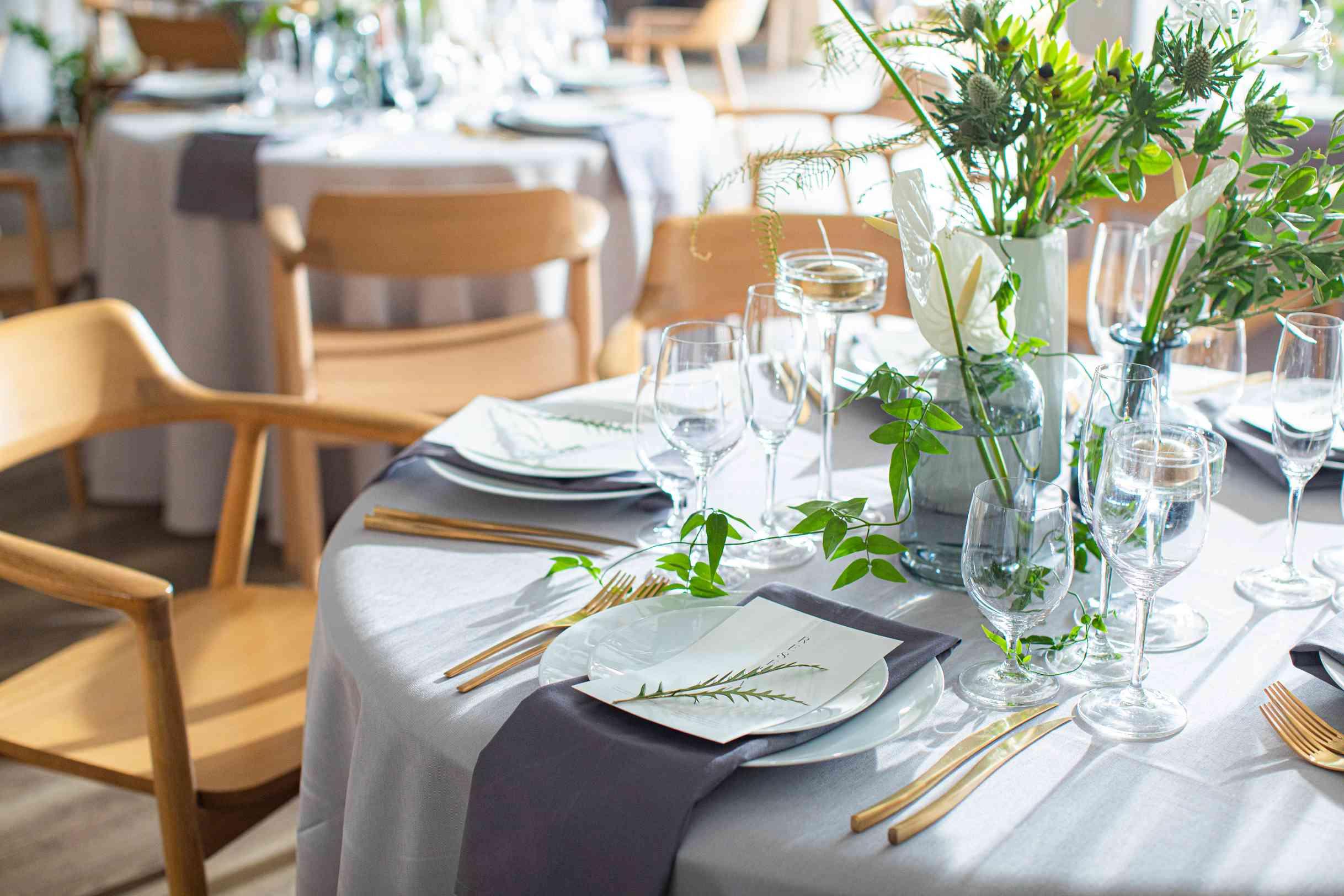 新たに生まれ変わるパーティ会場は、温かく優しい自然素材と上質な表情を見せる素材を組み合わせ、本物の美しさ宿るモダンとトレンドが融合する特別な場所へ。*90名様まで着席