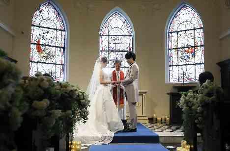 ステンドグラス輝くチャペルで憧れの挙式
