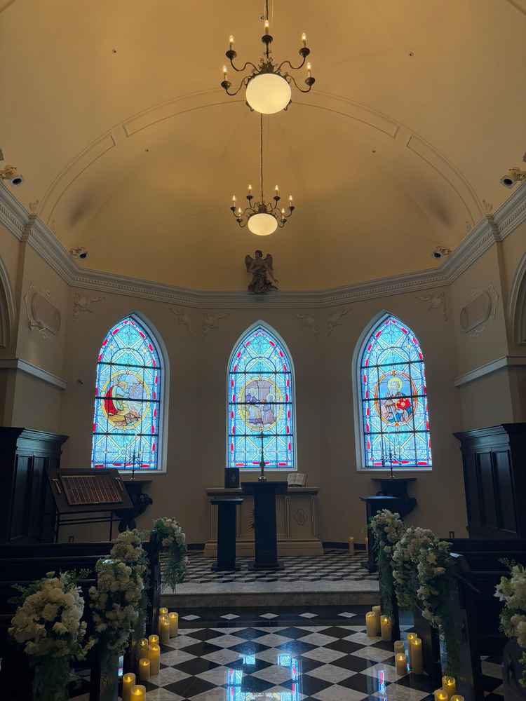 チャペルがとても素敵でした。ステンドグラスが、正面だけでなく横にもあり、どこからとってもステンドグラスが見えるというのは、素敵だと感じました。