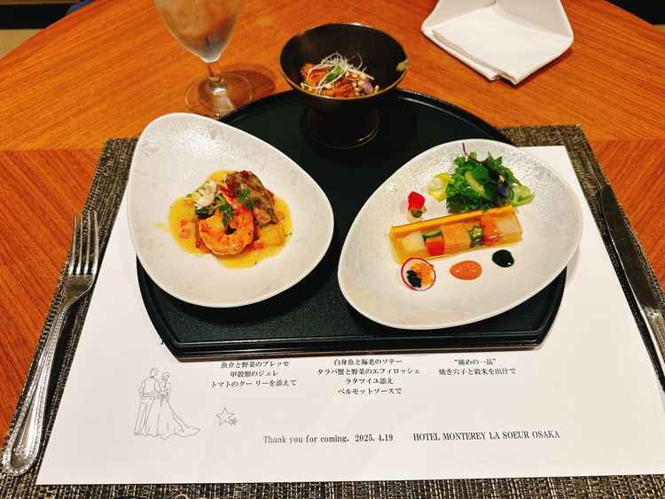 新郎(魚メイン)、新婦(肉メイン)で2パターンの料理を用意してくださったので食べ比べも出来て良かったです。味もとても美味しかったです。