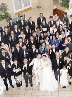親族だけじゃなくて、ゲスト全員の集合写真も撮りたい♪80名ゲストがいるケド大丈夫!?そんな悩みも解決できちゃいます☆ウェディングの為に造られたホテルだからこそ、ゲスト全員の笑顔がバッチリ撮れるガーデンをご用意!全天候型だから、暑さ寒さも気にならない☆