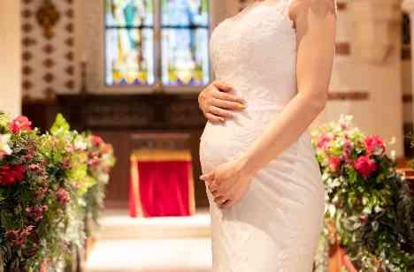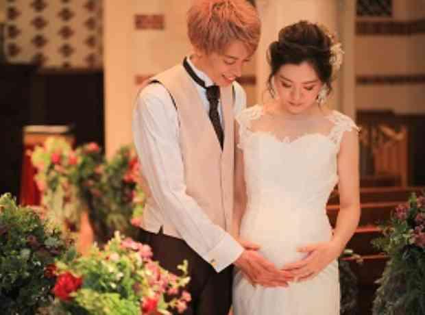 ウェディングドレスからカラードレスへのお色直しは定番とされておりますが、おふたりは一味違いました。ご新郎様はジャケットを脱ぎ、ご新婦様はマーメイドラインのウェディングドレスにスタイルチェンジされました。 お腹のお子様と3人一緒に入場されているようで、会場からも大きな歓声が上がり、皆様大盛り上がりでした。
