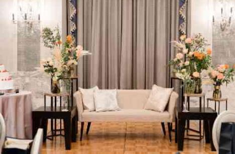 メインテーブルはソファー席にしてたくさん悩んで決めたドレスがしっかり映えるようにしました。ホテルモントレ京都はお花のお打ち合わせをデコレーターとどんなお色味が好みなのか、どんなドレスを着るのかヒアリングをして決めていきます。そしてお2人はお花の少しお色味を抑えて優しい雰囲気を演出。ゲストからも大好評でした!
