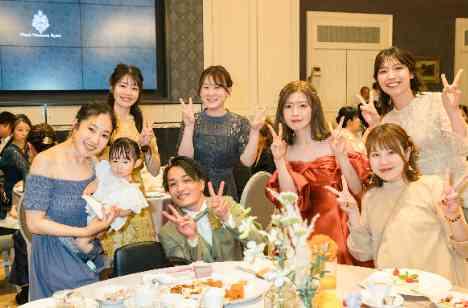 シャンデリア輝く会場でホームパーティーの様な優雅な時間を演出しました。大切な皆様が固くならず普段通りに楽しめるそんなパーティーにしたい。お二人の想いが叶った有意義な時間でした。ゲストの皆様は自由に会場を動き回り新郎新婦様を祝福。そして両家の皆様の仲も深まる空間となり心の底から笑顔が溢れておりました。