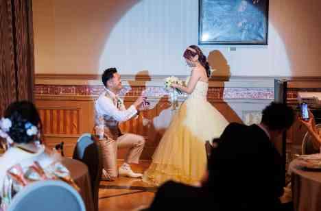 ウェルカムスペースに設置したゲスト参加型の演出♪お色直し入場の際のポーズ当てクイズの正解発表の瞬間!ここで伏線回収です。みんなの前でのプロポーズの姿は少し恥ずかしい。。。と新郎様は打合せの際、少し照れくさい笑顔を見せておりましたが、ゲストの方の盛り上がりと、ご新婦様の嬉しそうな表情を見られて思わず涙する新郎。やってよかったとお言葉もいただきました!