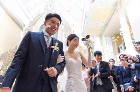 挙式の後には定番のフラワーシャワーを♡皆様の暖かい拍手に包まれながらおふたりのご登場です。チャペルでのお式では皆様に見守られながらしっかり愛を誓っていただき、暖かい雰囲気に包まれたあとは、インナーガーデンの明るい雰囲気でフラワーシャワーを。ゲストの皆様が直接お祝いを届けられる瞬間におふたりもゲストも笑顔が溢れるシーンとなりました。