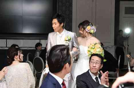 披露宴時には、職場の仲間からのサプライズの踊りのプレゼントがあったりと終始和やかでアットホームなお時間になりました。ファーストバイトの際は、たくさんのイチゴに囲まれたケーキをご使用になりました。披露宴の際にもお2人の好きなキャラクターは健在でした笑