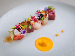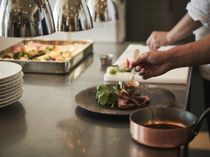 1回に100皿を作るのではなく、1皿を100回作る気持ちで 料理は「おいしい瞬間」が大切。ナイフが入り肉汁がじわりとあふれる時、シャキシャキの野菜の驚くほどの甘さ。1皿1皿を追いかけるように仕上げ、「おいしい瞬間」にゲストのもとへお届けします。 料理は「おいしい瞬間」が大切。ナイフが入り肉汁がじわりとあふれる時、シャキシャキの野菜の驚くほどの甘さ。1皿1皿を追いかけるように仕上げ、「おいしい瞬間」にゲストのもとへお届けします。