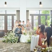 陽光が降りそそぐエレガントシックな会場出来立てのお料理や会話が彩る特別なパーティ