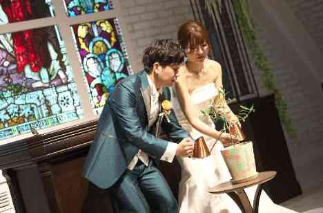 笑顔溢れる挙式にしたいと、挙式スタイルは人前式に。誓いの言葉はそれぞれの親友様から問いかけていただきました。リングガールを努めてくれたのは、お二人の大切なお子様。緊張しながらも頑張って指輪を届けてくれました。そして、挙式前にゲストの皆様に鉢植えに色を付けていただいたオリーブの樹。お二人は「これから家族にたくさんの幸せが運ばれてきますように」と願いを込めて水合わせの儀を行いました。