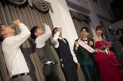 ゲストの皆様が楽しめる面白い演出がしたいとおっしゃっていたお二人。ご提案したのは再入場で新婦様がどのドアから入場するかを当てる演出でした。ゲストの方にもご協力頂き、外れ!当たり!と会場は大盛り上がり!さらに、外れた回数分のお酒を飲むという演出で追い込まれたご新郎様に、新婦様から”アルコール禁止”のタスキが...残ったお酒は、ご友人様に飲んで頂き、会場には笑いと活気が溢れていました♪