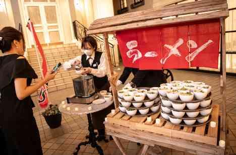 デザートブッフェでは、甘いものだけでなく、しょっぱいものも取り入れたいと色々な種類のフライドポテトをご用意しました。装飾にもこだわり、某ハンバーガーチェーンと思わせたロゴは、マリエルコートの『M』というオマージュを考えたりと、とても工夫されていました。ポテトだけではなく、ラーメンの屋台も好評で、ゲストの方は、斬新なデザートブッフェにとても喜ばれていました。