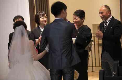 新婦様から「当日は絶対ずっと泣いてると思う!」と笑いながら言われていた新郎様。その言葉通りファーストミートは、新郎様のあふれる涙とそれを包み込むような新婦様のキラキラした笑顔が印象的なワンシーンとなりました。 続くファミリーミートでも、実は親御様よりも涙していたのは新郎様。地元を離れ、遠くで暮らすご家族に届けた“新しい門出に立つ姿”。親御様はとても温かなまなざしで見守っておられました。