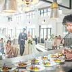 二面窓から温かな陽光が降りそそぐパーティー会場。お料理が出来上がる様子を楽しめるオープンキッチン併設され、五感で味わうお料理がゲストから好評。会話と美食を楽しむ時間をゆっくり過ごして。寛いだ雰囲気が笑顔を誘う。