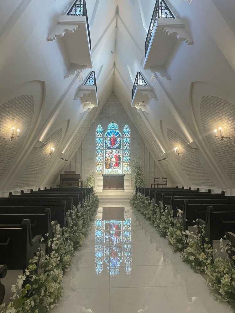 パリの雰囲気を再現していて披露宴会場照明や床、窓、ドアノブなど細かい所までパリ感を取り入れていたので世界観を壊すことがないと思った。チャペルのステンドグラスが外のフラワーシャワーをする所に出ても見えるのが素敵だった。