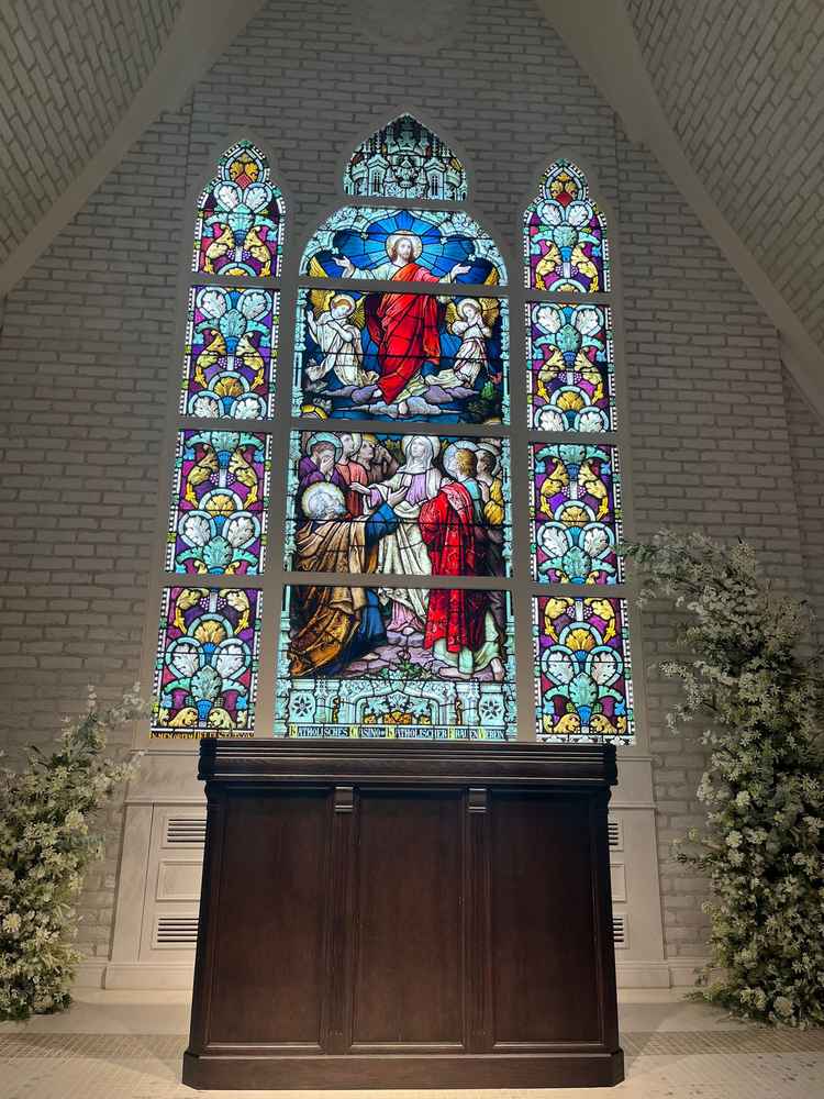 新しい設備と、ステンドグラスが印象なかわいいチャペルがある | マリエルコートインターパーク