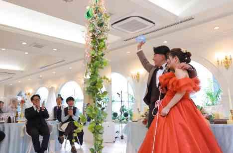 実はもうすぐお二人には新しいファミリーが誕生します!そこでゲストの皆様に性別&お名前発表の為にバルーンスパーク演出を行いました。ビッグバルーンの中には色付きのミニバルーンを入れておき・・・ 中から出てきたのはブルーのバルーン、そう!男の子でした♪会場全体が大きな拍手と大歓声に包まれ、大盛り上がりの瞬間でした☆