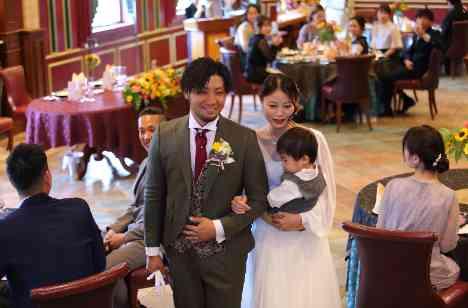会場はシックな雰囲気で人気のドゥサーラ。 お子様とのご入場で和やかなムードに。 パーティーでは多くの演出はせず、大切な方々からのあたたかいメッセージをいただいたり、記念写真などでゆっくりとゲストとの時間を楽しめる進行に。 直接『おめでとう』『ありがとう』と伝える事が出来るるパーティーは、最高の思い出になっていきます。