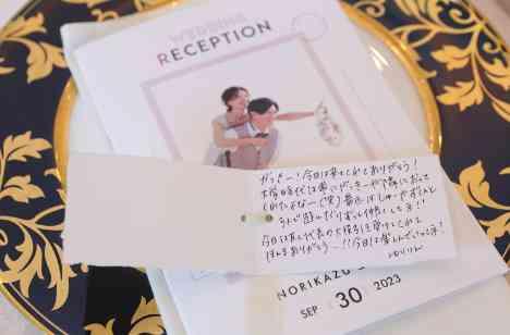 列席者一人一人への感謝を伝えるためのメッセージカード。80人以上へのメッセージは大変でしたが、一枚一枚手書きで頑張りました。 一生一度の結婚式を大切な方たちと過ごせる幸せ。 全員にとって最高の一日になるように、みんなが楽しめるようにと打ち合わせを重ねました。 たくさんの人に支えられて、今日を迎えることができたからこその大事なポイントです。