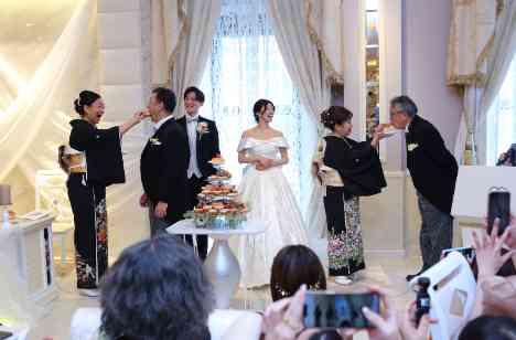 ケーキカット後のファーストバイト。まだまだ未熟な私たちだから、お手本を見せてほしい!とお父様お母様も参加! とても自然な食べさせ合いに、『普段からしてるのかな?』と会場中も笑顔に包まれました。 こんな風にずっと中野良い夫婦であり続けたいと、決意新たにする新郎新婦様。 きっとこれからもたくさん頼ると思うけど、どうぞ、宜しくお願い致します。